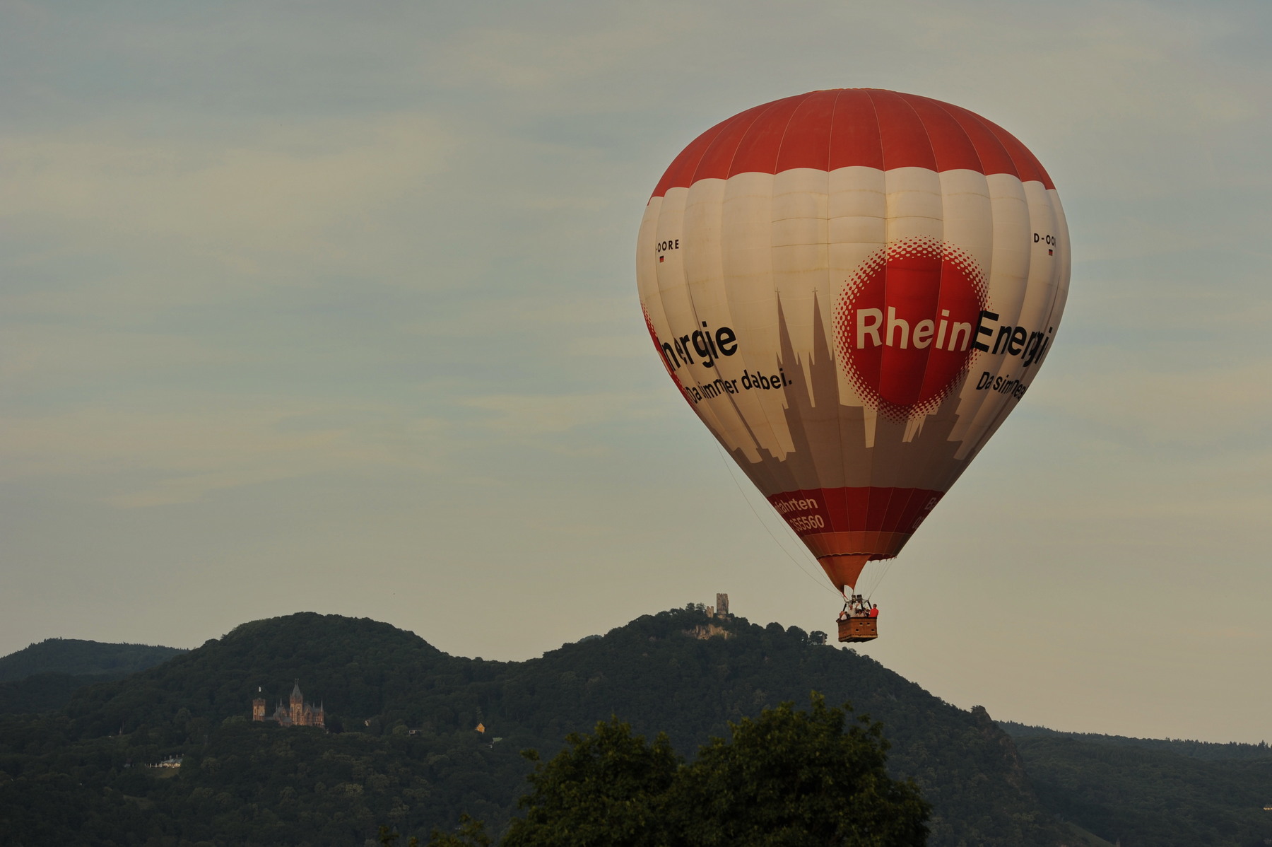 Ein Schnappschuss zum diesjährigen Ballonfestival in der Bonner Rheinaue. Der Ballon trieb durchs Rheintal gen Süden und zog in niedrieger Höhe majestätisch vor Schloss Drachenburg und dem Drachenfels vorbei.