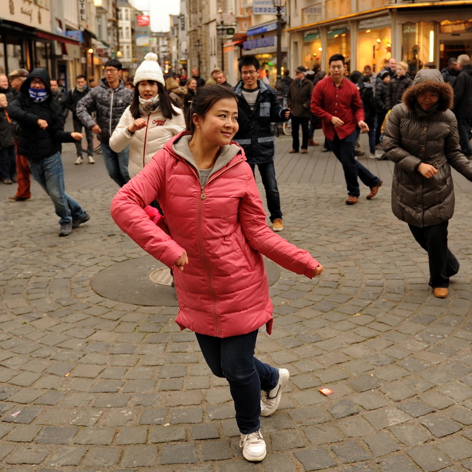 Die Abteilung "Internationales" des Bonner Studentenwerks organisierte die Darbietung eines chinesischen Tanzes auf dem Bonner Marktplatz. Der Tanz war so…